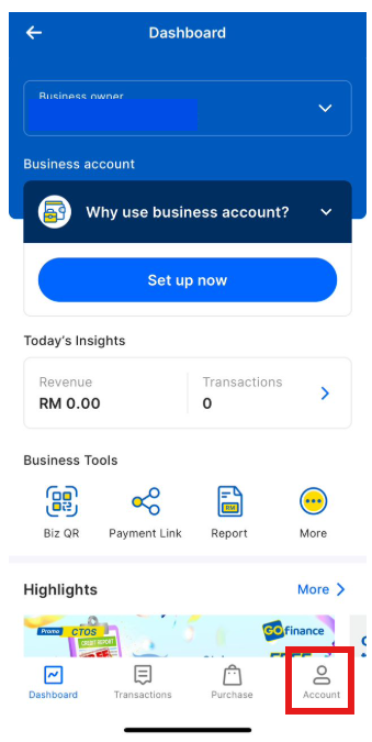 Langkah 4: Pilih Nama Merchant pada bahagian atas di halaman Profile